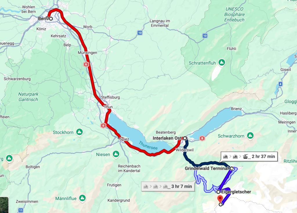 Bern → Interlaken Ost → Grindelwald Terminal → Eiger Express → Jungfraujoch